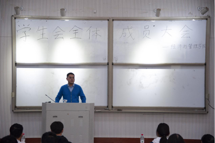 在教学楼大教室5举行学生会全体成员大会。院团委副书记杨鑫出席会议,麻豆做爱