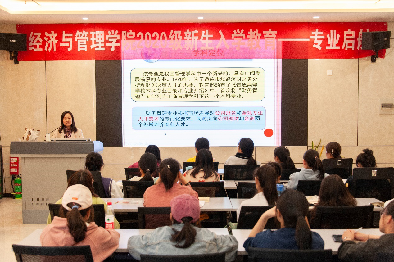 在教学楼B206举行2020级新生入学教育——专业启航专题讲座。此次讲座由会计系教授、博士生导师陈素云老师主讲,会计系郑方方老师主持。2020级财务管理专业新生积极到场参加。