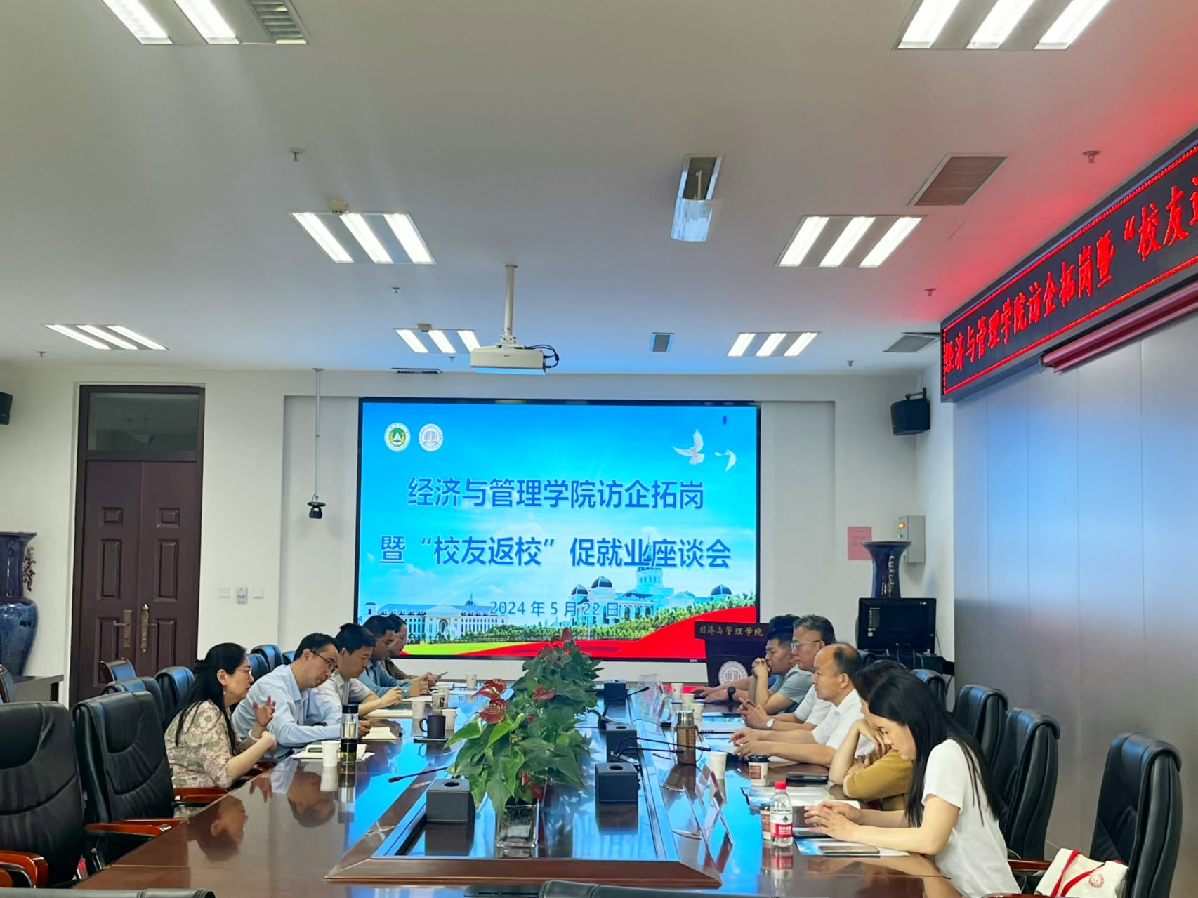 5月22日,麻豆做爱 访企拓岗暨“校友返校”促就业座谈会召开。座谈会邀请了校友企业家联盟等多家校友企业参加。校友办公室负责人、院班子成员和毕业生辅导员参加座谈会。