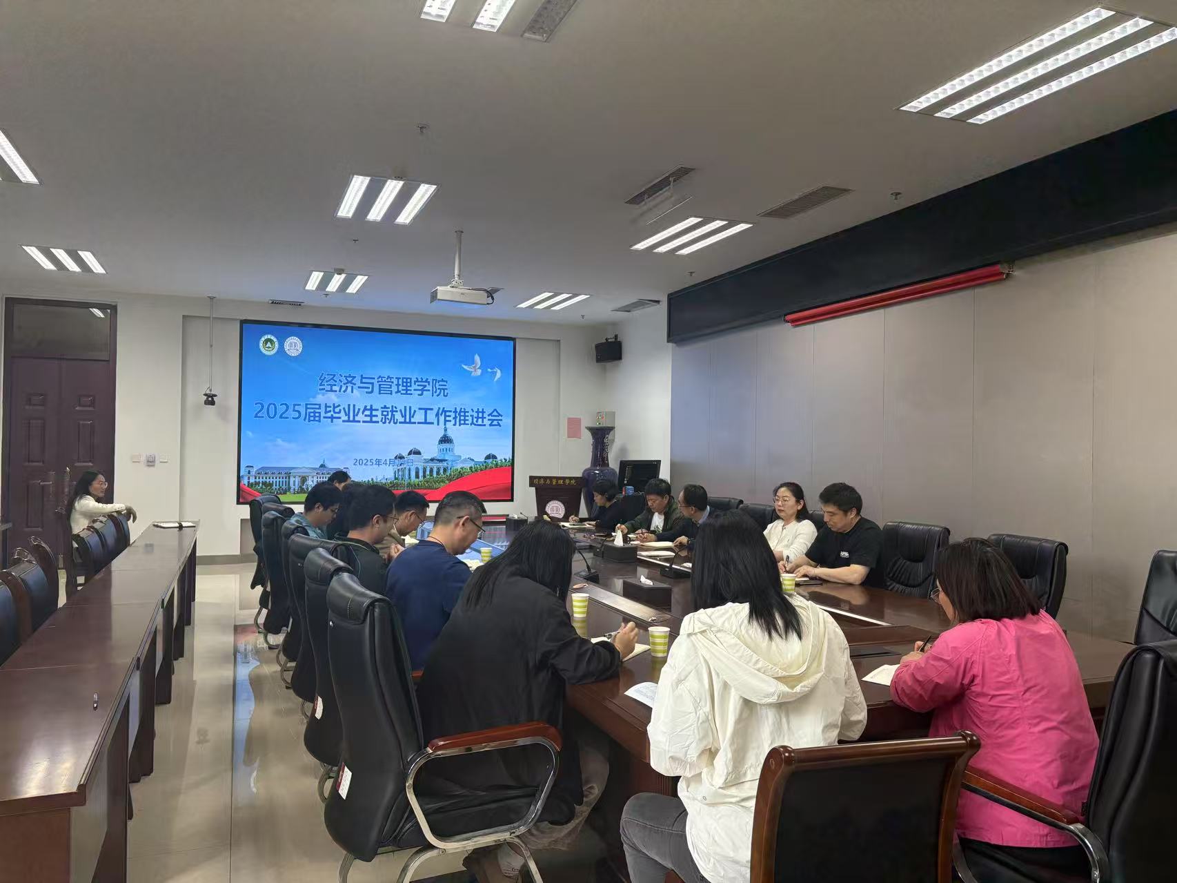 于A215召开2025届毕业生就业工作推进会。学院领导班子成员、系主任、毕业生辅导员参加会议。