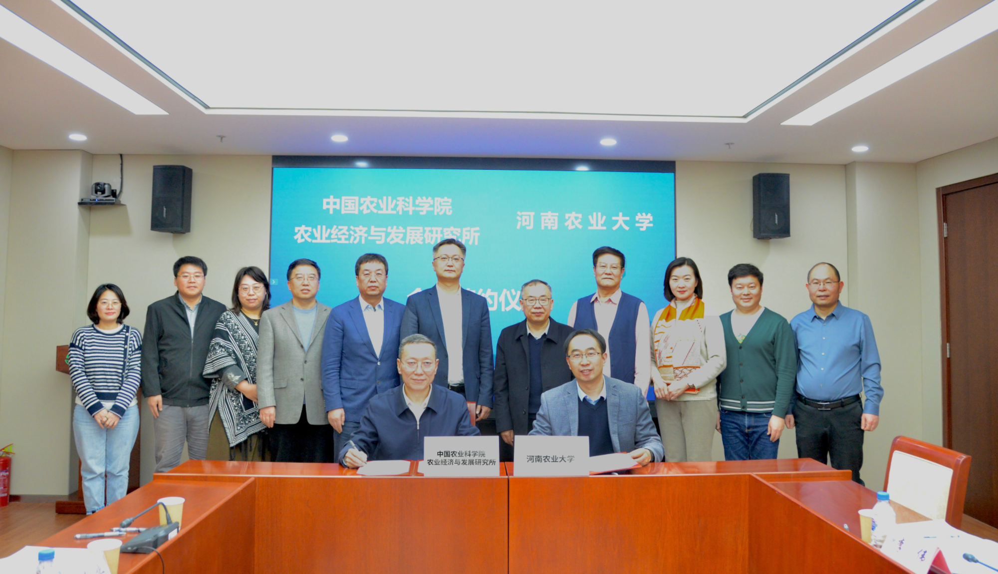 党委书记王宏立、中国农业科学院农业经济与发展研究所副所长孔繁涛分别代表双方签订合作协议。