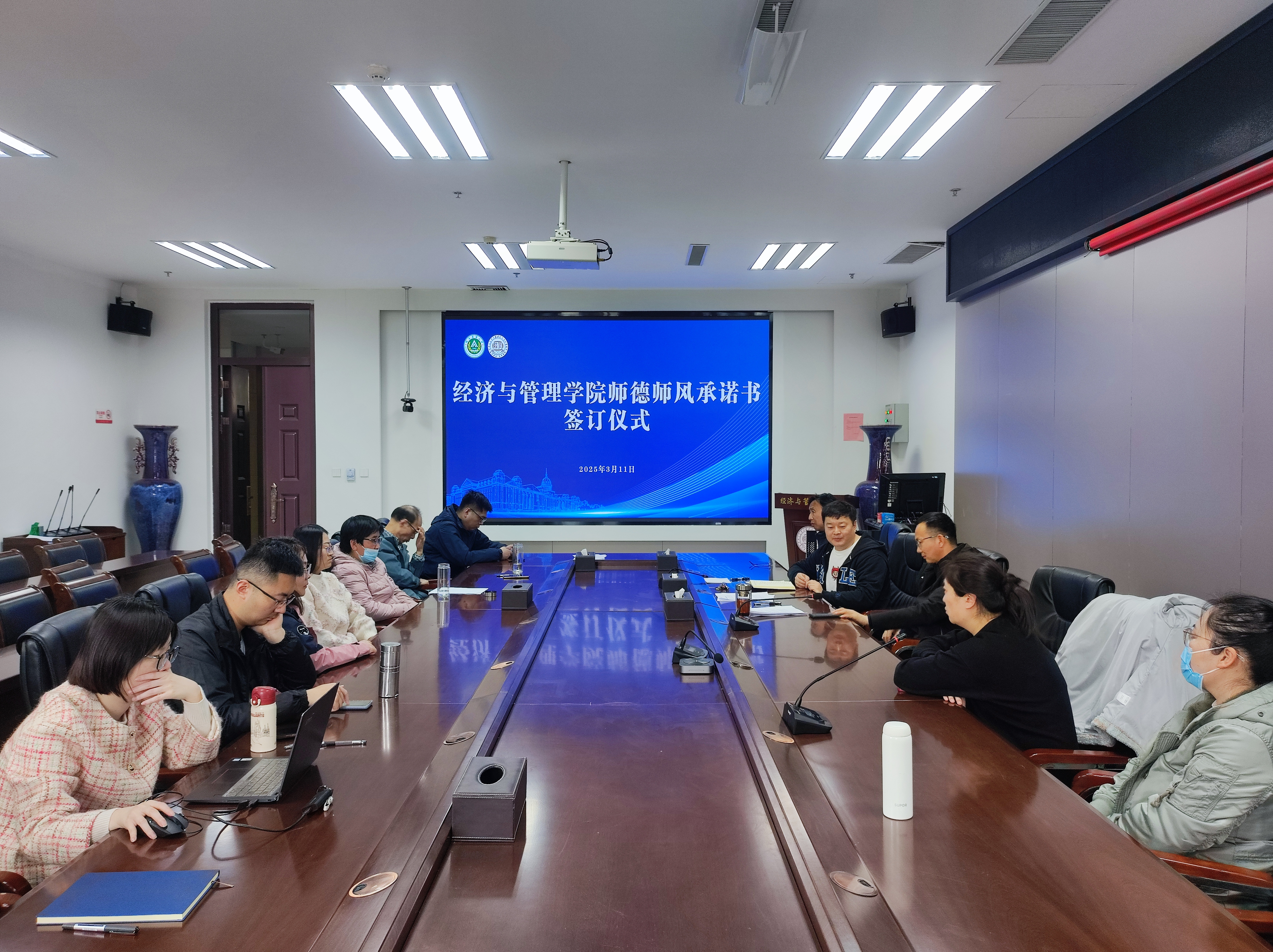 第二阶段,各系组织开展师德师风承诺书签订仪式,旨在强化教师的责任意识和职业道德。