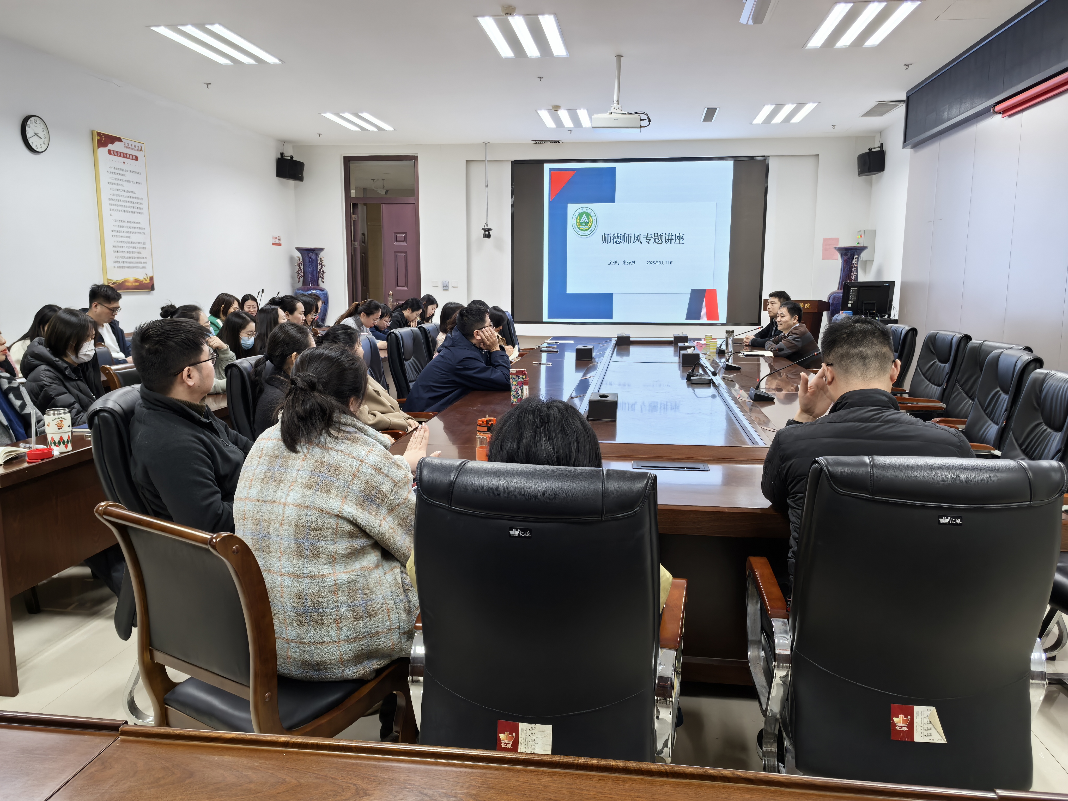 于3月11日下午开展师德师风专题学习活动。活动分两个阶段进行。第一阶段,教学督导宋保胜教授在A215会议室为全院青年教师作师德师风专题讲座,副院长宋宇主持会议。