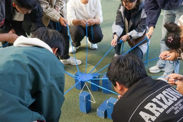 积力之所举,则无不胜也;众智之所为,则无不成也。倾全力于一身,集合力于一塔,这是力量与技巧的双重博弈。同学们齐心协力,紧紧握住手中的绳子,调整力度,掌握平衡,努力使每一个塔块落到正确的位置。