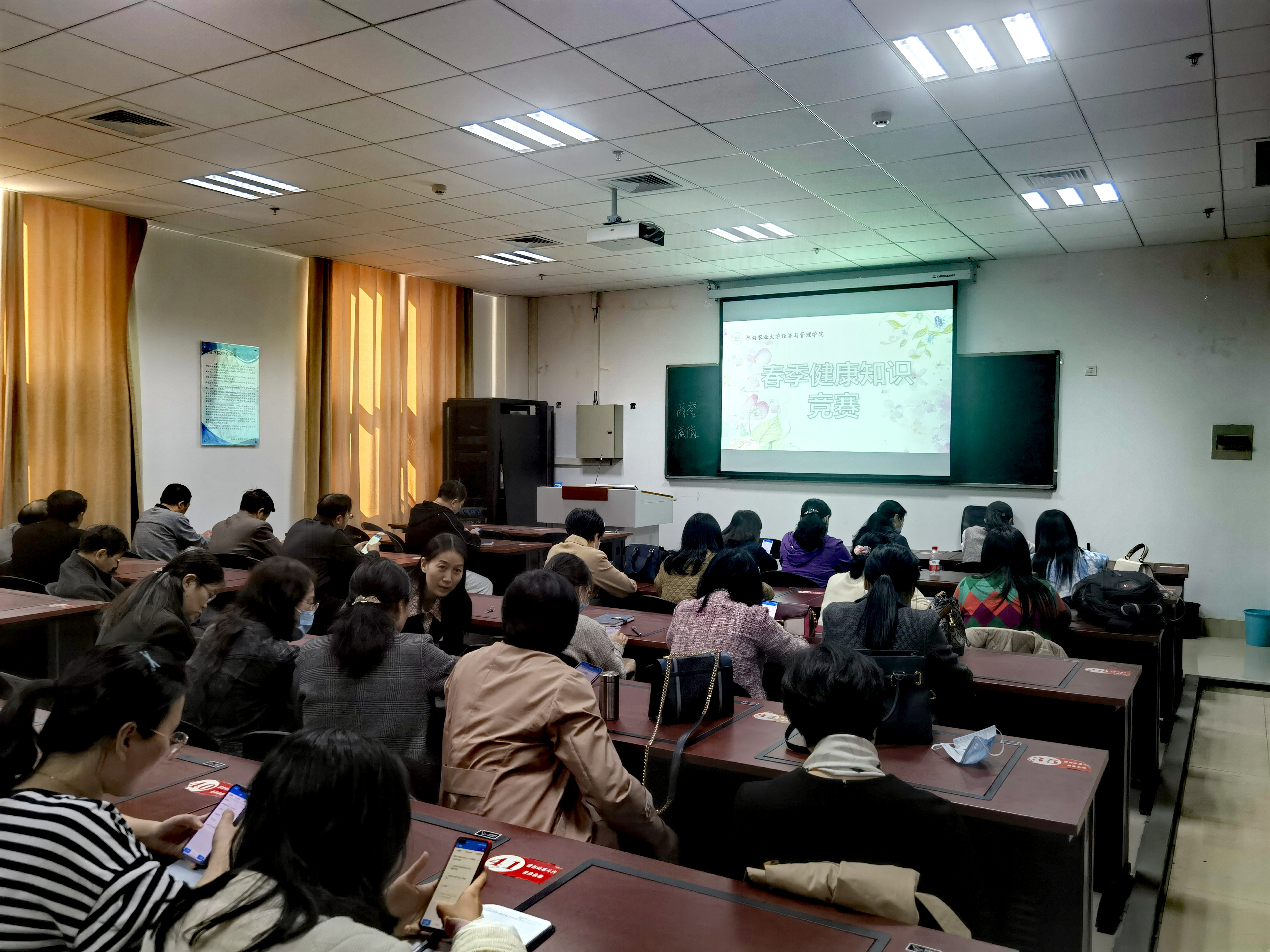 在繁塔楼B208举办“春季健康知识竞赛”,学院教师参加活动。