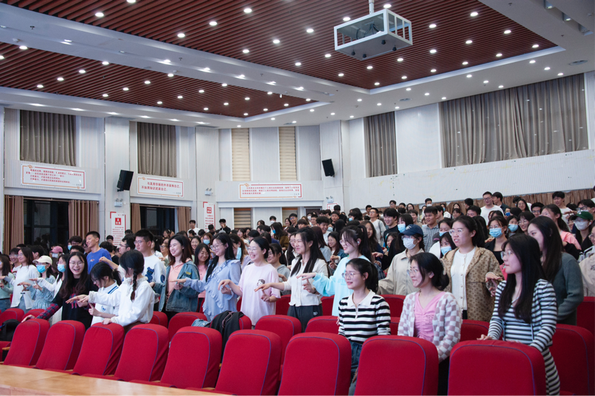 会议伊始,董方白就自己的求学经历和工作经验向大家简单进行了自我介绍。随后,她邀请在场同学参与热身活动,将现场的气氛烘托到了极致。随后,董方白以“爱自己是终身浪漫的开始”为主题展开了现场调查,通过思考“最欣赏自己的地方”来内省,引导同学认真地思考自己的优点,发现自己的闪光点,真正做到“悦己”;回答“如果我是一个……,我最想成为一个……”,增强学生对自己的认知;以介绍朋友的方式,挖掘他人的长处和优点,增进了相互之间的理解,进一步提高“悦人”的能力。结合真实案例和数据统计,董方白表示学生骨干存在的心理问题主要集中在人际交往障碍、学习竞争激烈和学生工作绩效等方面,对此,她围绕倾诉、放松、营养、兴趣和活动五个维度进行细致讲解,鼓励学生积极进行自我调适。最后,就心理健康的污名化问题,她郑重声明心理咨询面向的是正常人,要求大家正确对待自身的心理健康问题,真正地做到关爱自己,尊重他人。