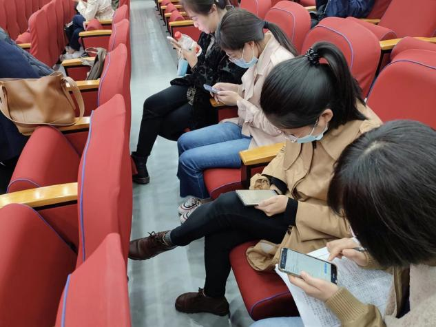 在大教室一举办“喜迎二十大,强国新征程”知识竞赛。各教工党支部参加活动。
