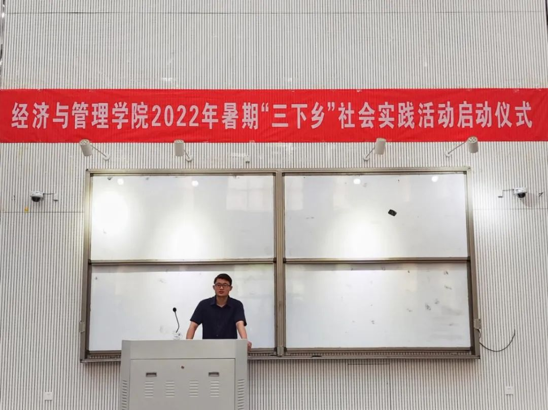 学生实践经历,告诫同学们在实践过程中要注重运用自身专业知识,看到乡村真正需要的地方,并深入研究探索。由于疫情防控的原因,他建议大家采取就近原则进行实践活动,遵守当地防疫规定,在保证自身安全情况下有序开展活动。此后,余月圆用习主席在庆祝中国共产主义青年团成立100周年上的讲话与大家共勉,他激励经管学子以奋斗之青春担当民族复兴大任、以实际行动做时代新人。