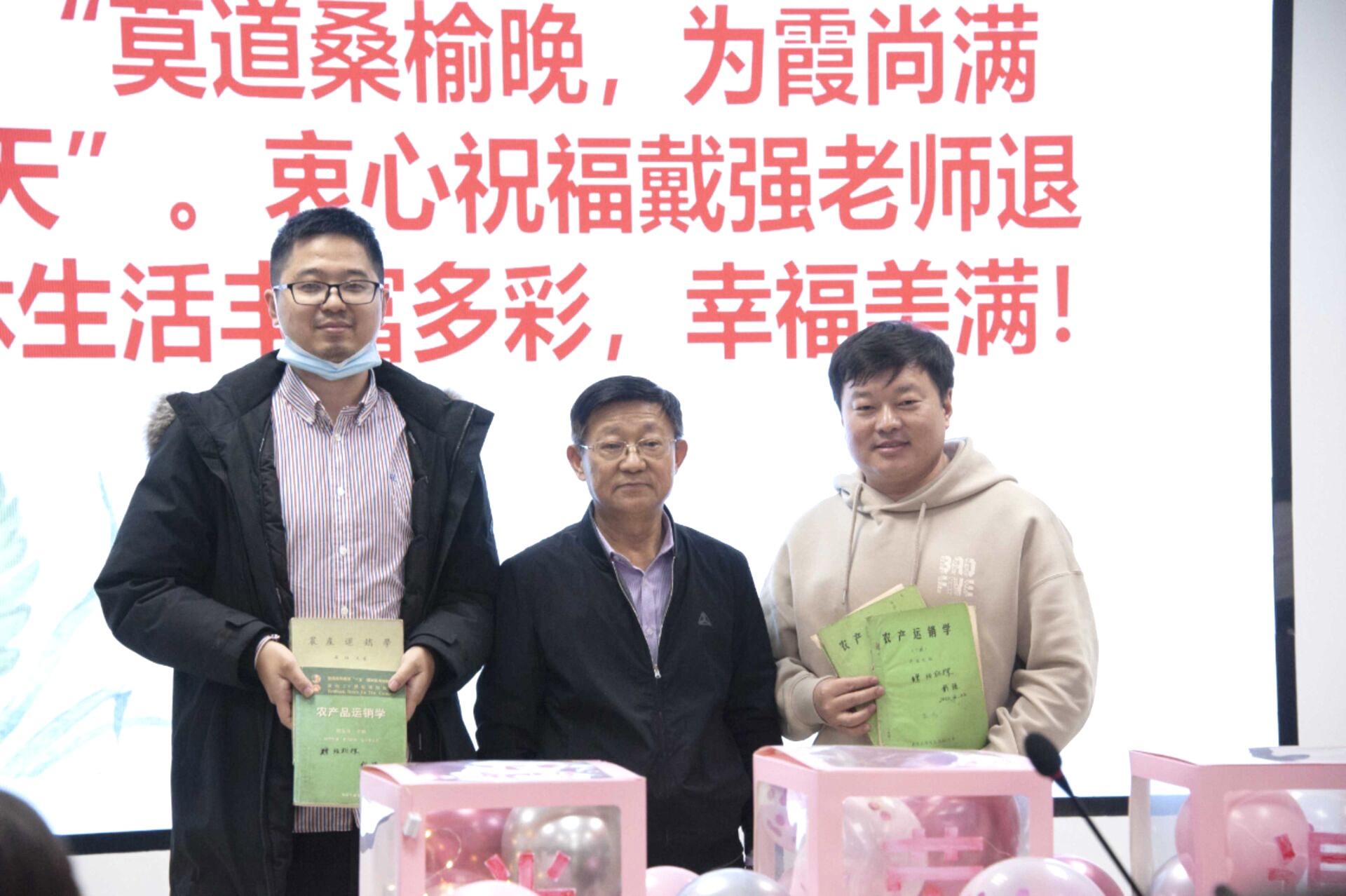 随后,戴强老师向部分年轻教师赠予图书,真切地表达了对教育事业、对学生的热爱,对学院和老师们的感激、眷恋之情。他表示退休以后将一如既往地支持学院的建设与发展,同时希望学院年轻教师能够发扬学术精神,祝福学院的明天更加美好。