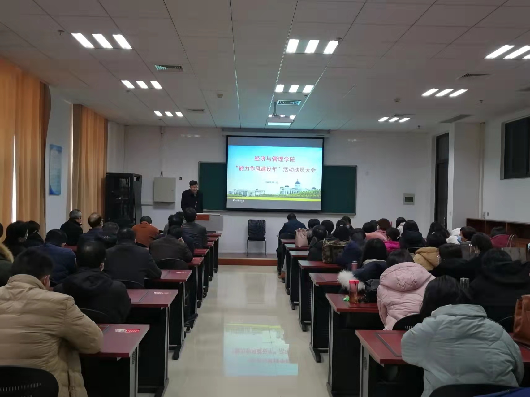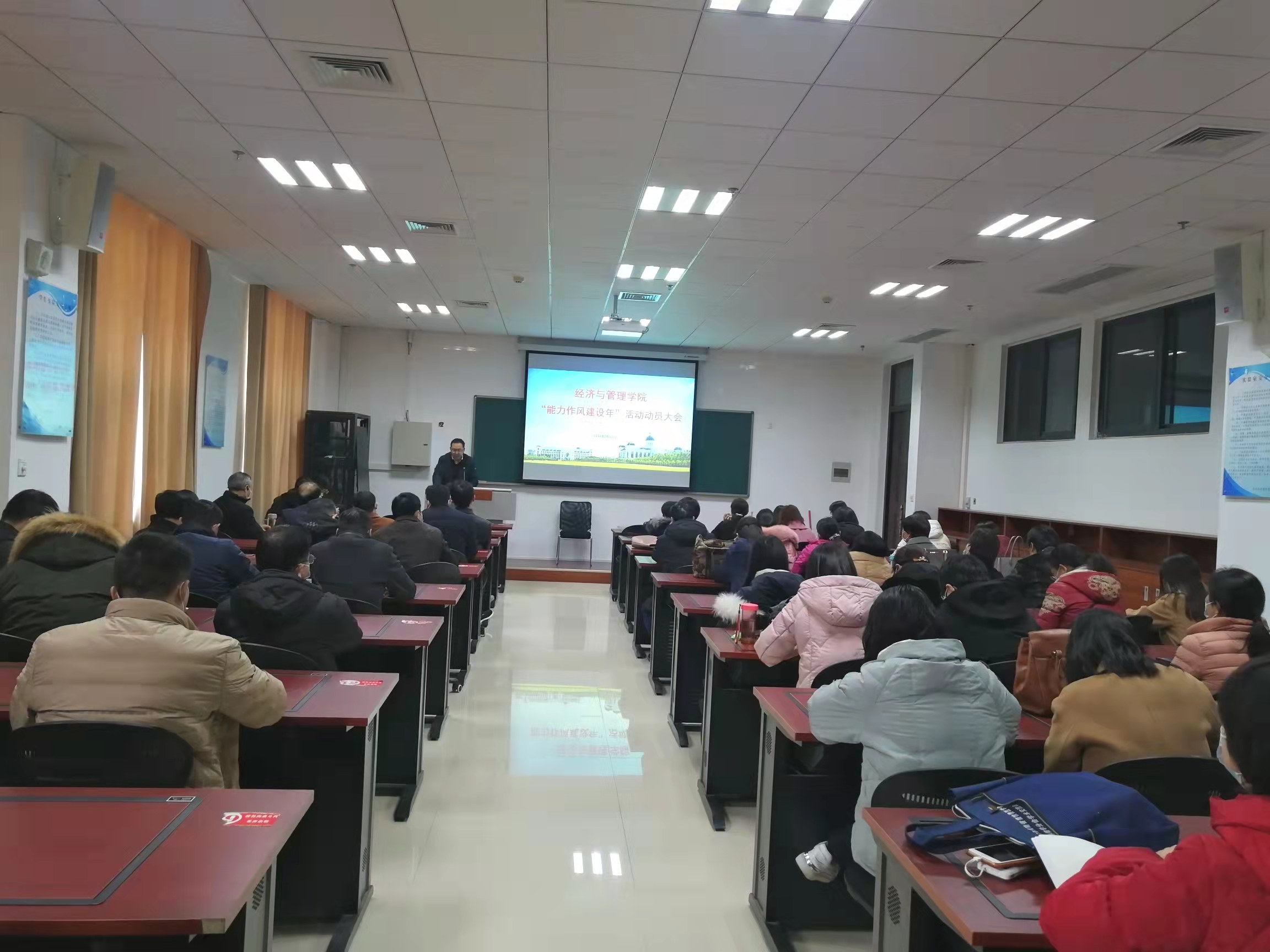 在B208会议室召开“能力作风建设年”活动动员大会,对学院开展“能力作风建设年”活动进行了安排部署。院领导班子及全体教职工参加会议。院长马恒运主持会议。