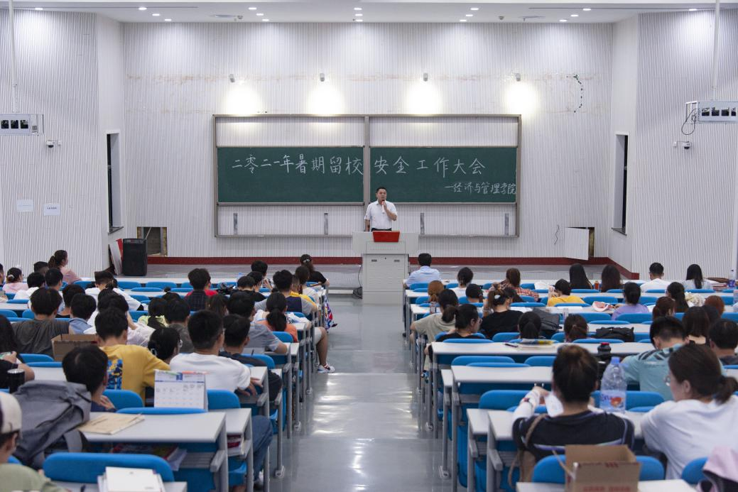 在大教室二举办2021年暑假留校安全工作大会。本次会议由院团委书记杨鑫主持,院党委书记牛青杨、院党委副书记方芳、团委老师们到场出席,暑假留校学生积极到场参加。