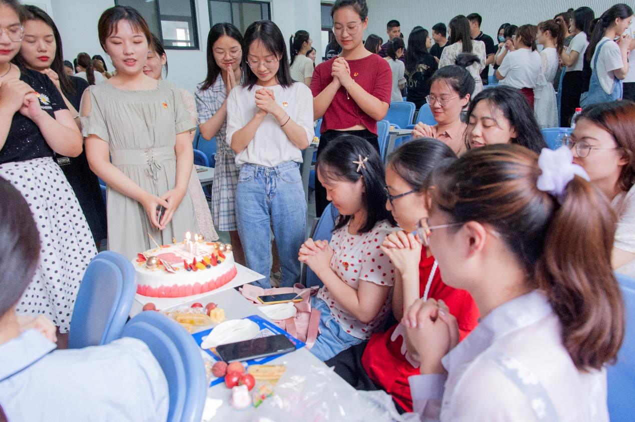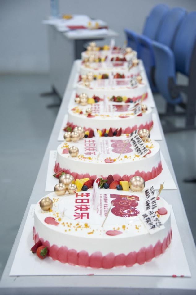 毕业生党员为我党送上了自己最诚挚的祝福。毕业生党员们在蛋糕上插上了代表建党百年的蜡烛,并为党献唱,表达了对我党百年华诞的美好祝愿。
