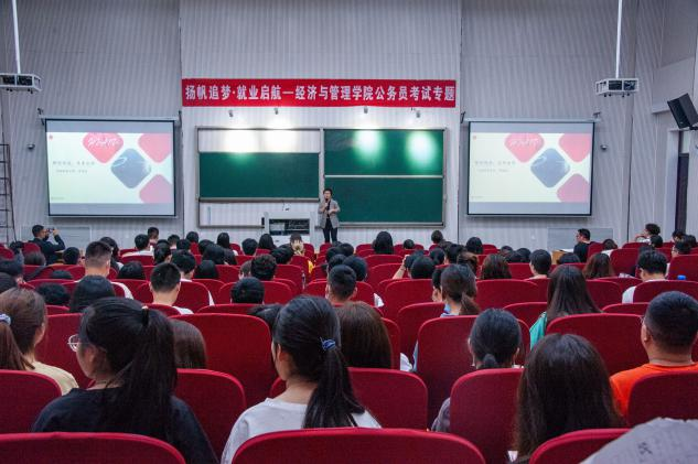 于繁塔楼大教室7举办了“扬帆追梦,就业启航”公职考试专题讲座。本次讲座由华图教育河南师资分院院长、公职考试研究与培训专家徐文璐主讲,院团委副书记冯慧丽、辅导员余月圆出席,学院有意愿参加公职考试的本科生、研究生积极到场参加。