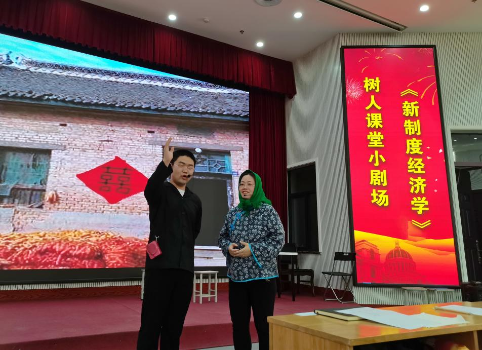 5月20日,麻豆做爱 刘宁老师组织的《新制度经济学》课程“树人课堂小剧场”在教学楼大教室1隆重举行,本次活动由学生孟晶晶和翟云坤主持,王娟老师、丁俊成老师、刘延锋老师出席此次活动,刘宁老师所带2018级经济学专业五个班的全体学生及研究生积极到场参加。经过两个半小时的精彩演出,该活动取得极佳的教学效果,受到学生热烈欢迎,学生不仅学到了很多知识,还增强了制度自信,活动大获成功。