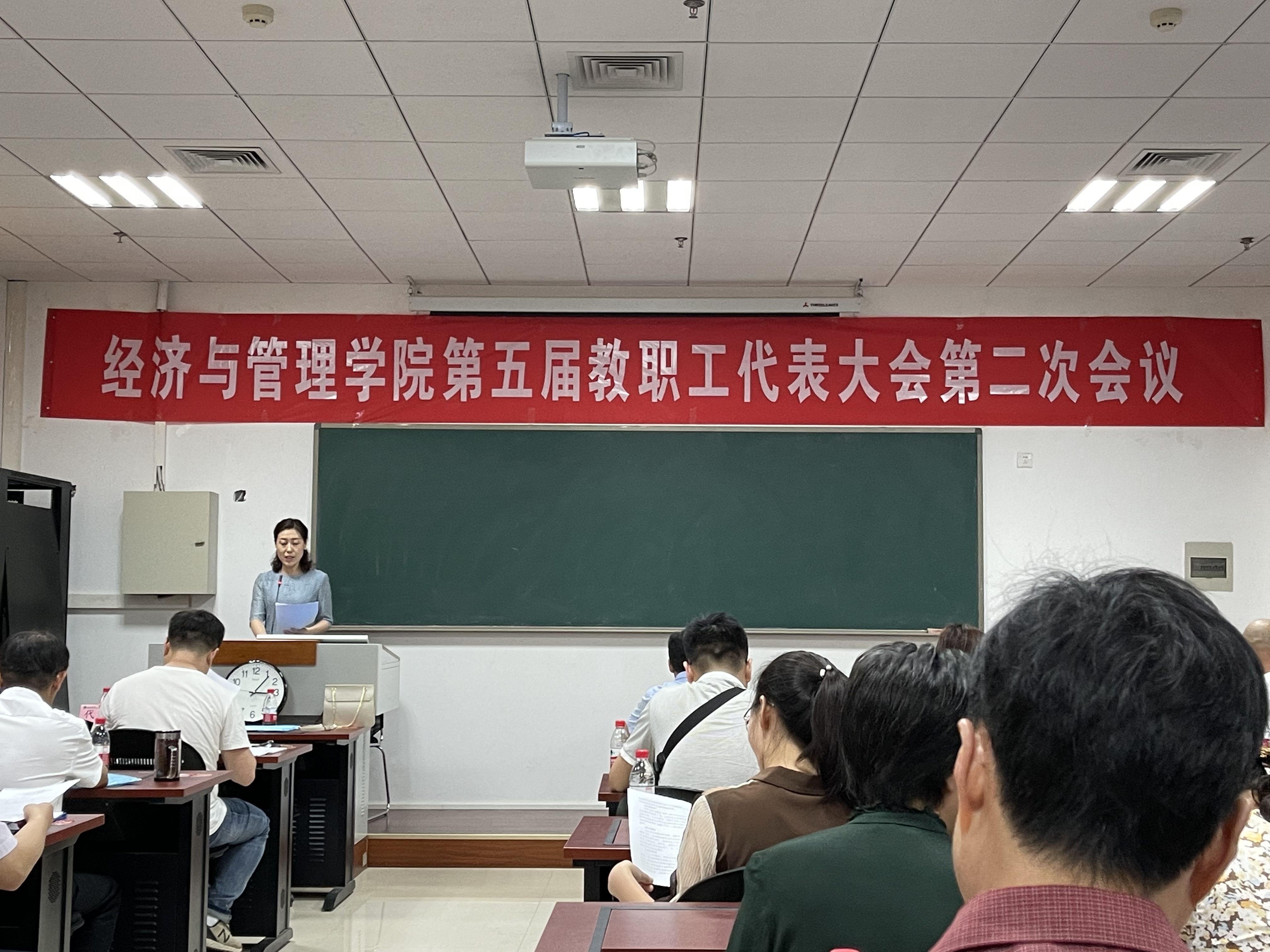 于繁塔楼B208召开第五届教职工代表大会第二次会议。院党委书记牛青杨、院长马恒运、院党委副书记方芳、副院长赵翠萍、副院长赵友平、院团委书记杨鑫、全院教师代表出席此次大会,会议由院党委副书记方芳主持。