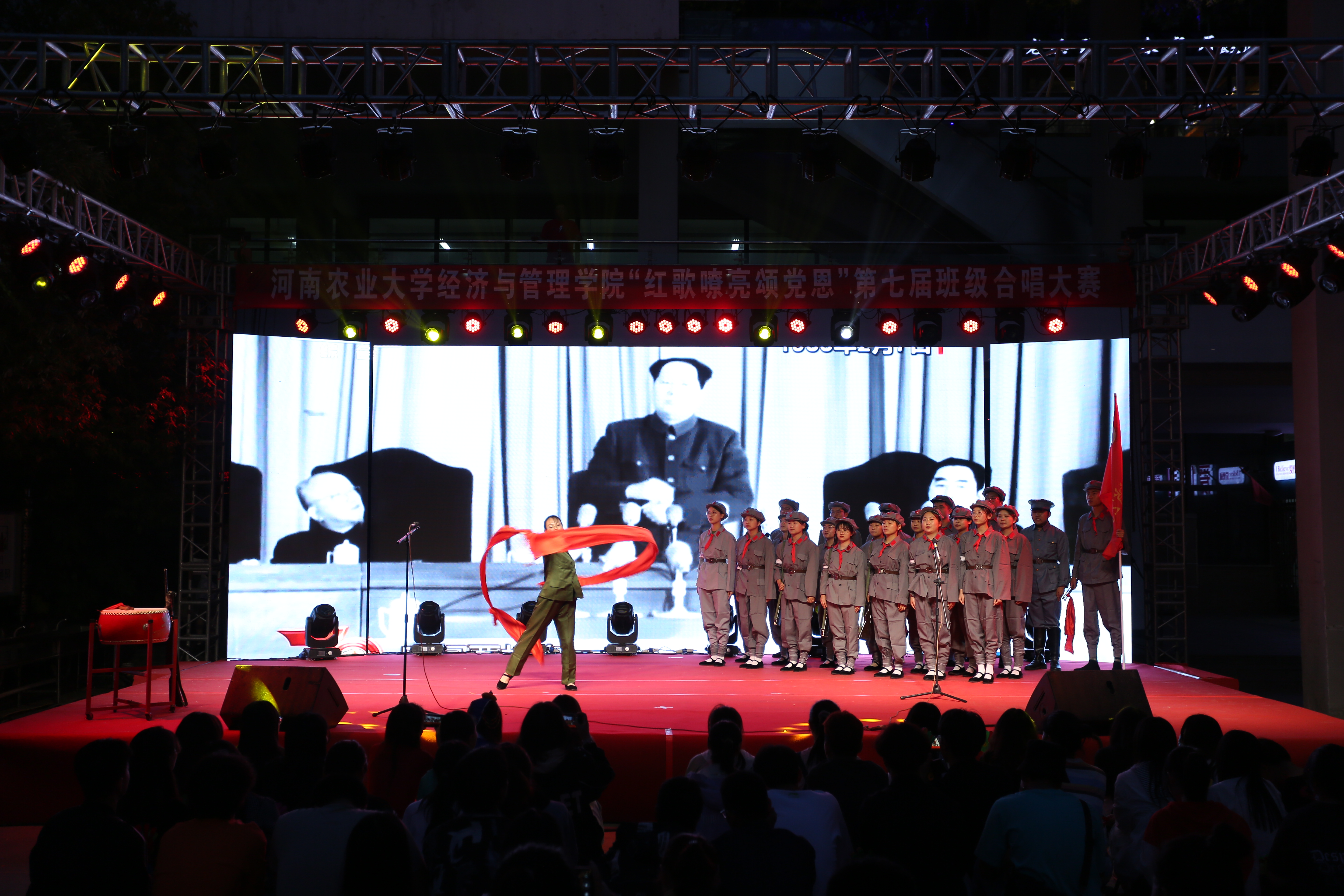 第七届“红歌嘹亮颂党恩”班级合唱比赛决赛在一餐文化广场隆重举行,活动在筑梦艺术团铿锵有力的歌声中拉开帷幕,12支经管学子代表队一展风采,以饱满的热情向建党百年华诞献礼,大气磅礴的歌声和旋律歌颂了中华民族自强不息的伟大精神、阔步向前的豪迈气概,唱出了新时代青年对党、对祖国、对社会主义的浓厚深情和热情讴歌,歌声催人奋进,气势振奋人心。