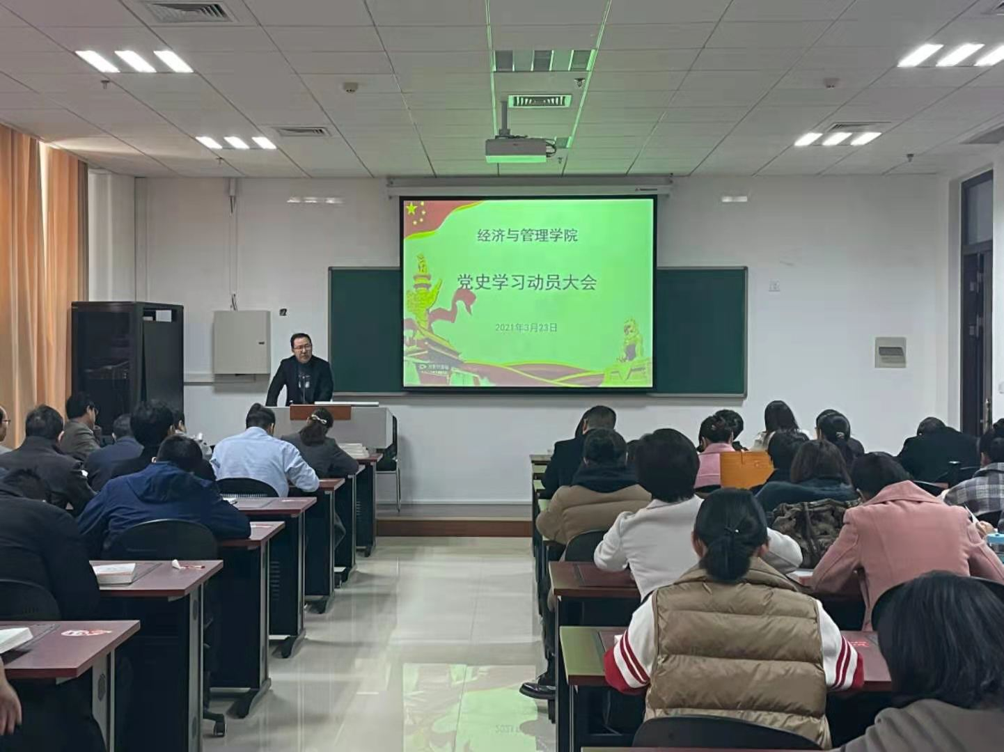 会上,院党委书记牛青杨对党史学习提出三点要求。一是要深刻理解学党史的意义,提高政治站位。他指出:在建党100周年到来之际,学习党史正当其时;共产党经过100年的历程,党员干部学习党史成为提高自身素质的需要;党史是深刻理解中国现代史的重要抓手和窗口。二是准确把握好学习党史的要点。党史内容浩如烟海,通过学习要达到明理、增信、崇德、力行。通过学习理解到党史不仅是理论创新史,又是自身建设史,同时还是一部艰苦奋斗史,党只有不断地理论创新、通过自身革命,才能使党永远保持生机和活力,才能跳出历史周期律。作为教师应立足于本职工作,把课教好,立德树人,展示好作为教师的形象,展示好经管人的形象,做好学生引路人,点亮学生心中的明灯。三是科学把握学习的方法。牢牢把握党的历史发展的主题和主线、主流和本质,用马克思主义理论联系实际的优良学风来学习,通过学习党史联系学校、学院的发展实际,从中得到启发和启迪。通过学习提高效果,达到悟思想、办实事、开新局,提升业务水平,推动学院事业发展。
