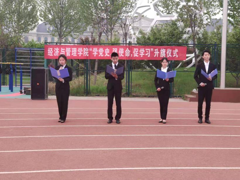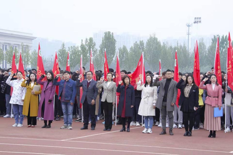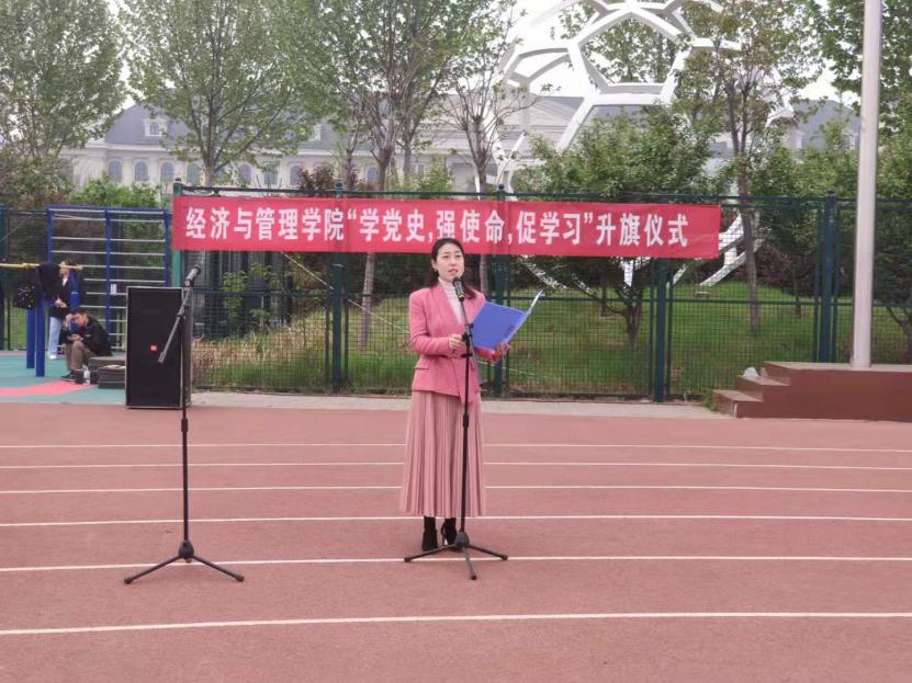 于龙子湖校区田径场举行“学党史、强使命、促学习”升国旗仪式。院党委书记牛青杨,院党委副书记方芳,副院长赵翠萍、赵友平和刘瑞峰,院团委全体老师出席了升旗仪式,麻豆做爱