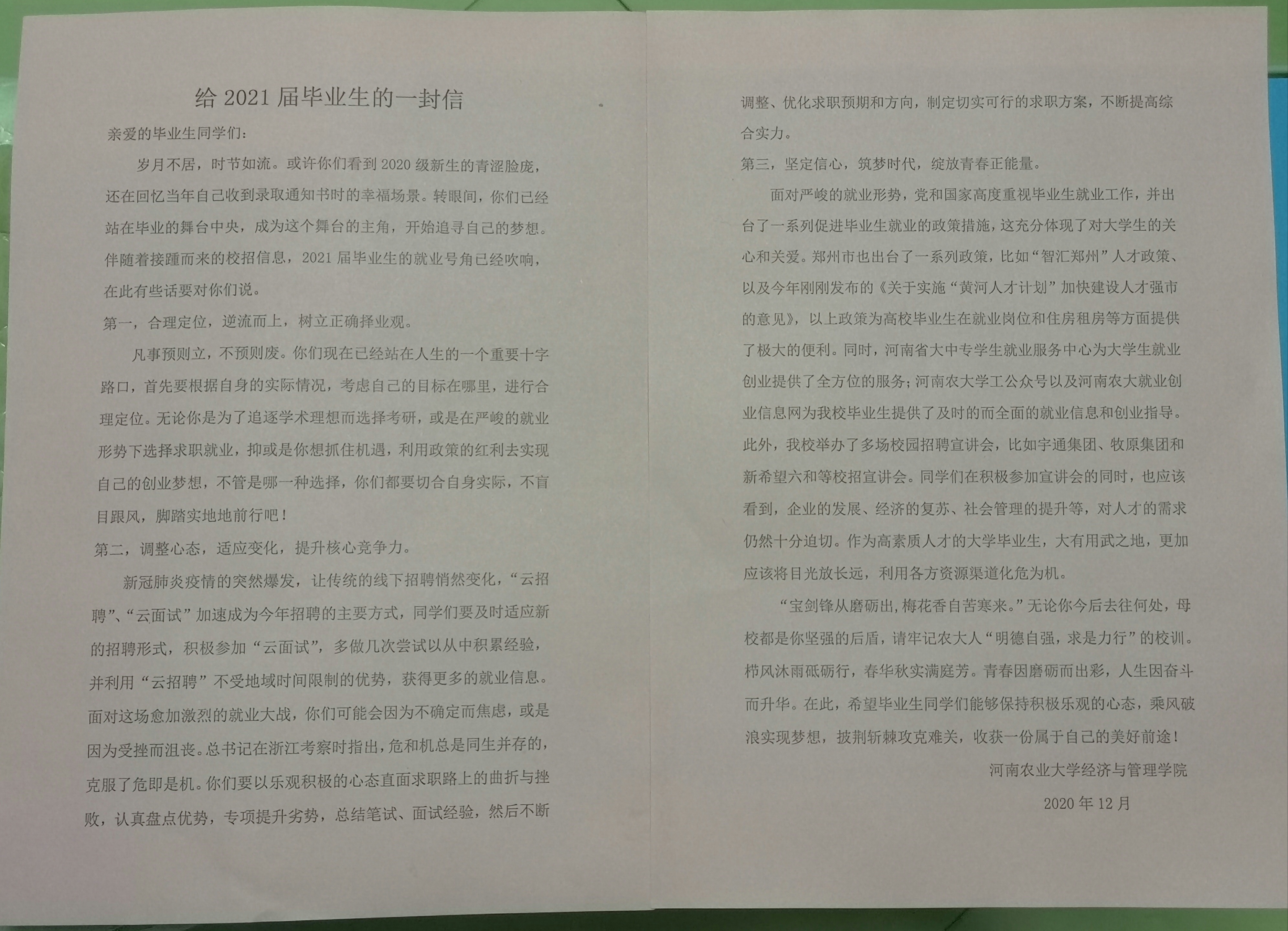会上,学院发放了给2021届毕业生的一封信、给毕业实习同学的温馨提示、学生毕业实习承诺书、实习记录本,本次动员会让毕业生更清晰的了解就业形势与政策,引导大家明确就业目标和定位,为实习就业工作的顺利进展奠定了基础,接下来学院还将通过就业双选直通车、校友主题沙龙等活动,全方位地为毕生实习和就业做好引导和服务。