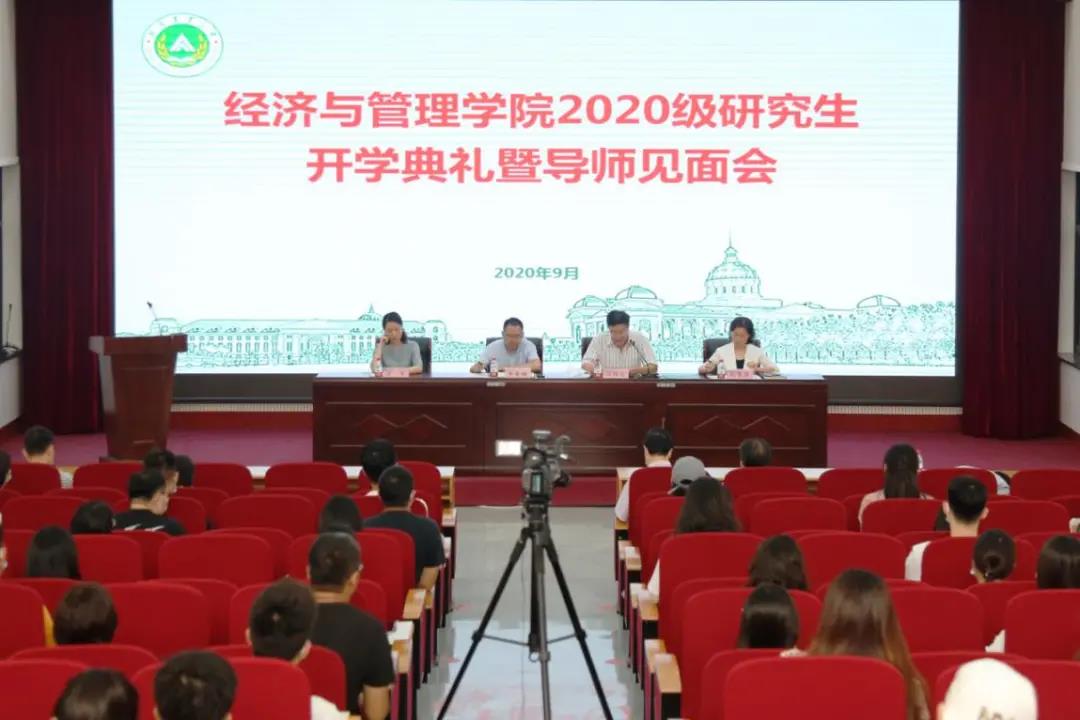 2020级研究生开学典礼暨导师见面会在龙子湖校区教学楼AB座二楼大教室举行。院党委书记牛青杨、院长马恒运、党委副书记方芳、副院长赵翠萍出席会议,研究生导师、院办公室主任、研究生管理员、辅导员以及2020级全日制研究生参加会议。会议由赵翠萍主持。